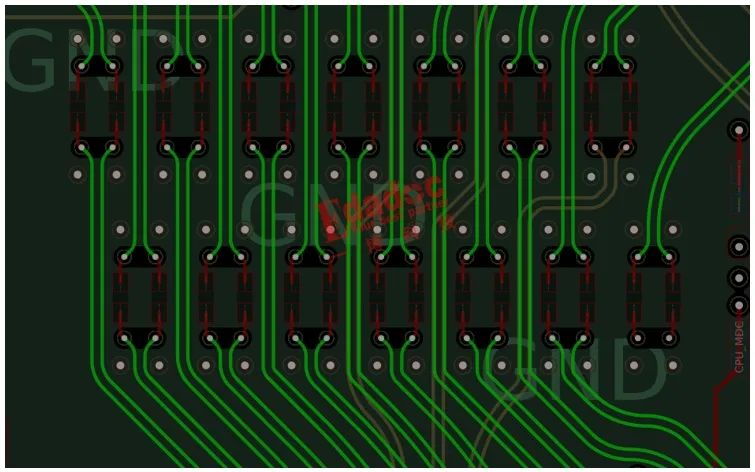 做过类似CPU服务器PCB设计的朋友都知道,CPU与CPU之间会有很多很多对高速互连的走线,也就是很多圈内人称为Interlaken的走线。你说这一大把互联的高速信号对数多也就算了,关键是每一对都需要在外面串上交流(AC)耦合电容。当然,我们知道原理上来说是需要的(至于为什么,可以翻翻之前高速先生的文章哈,里面啥都有说!),但是实际操作起来都会让设计工程师非常的讨厌,需要有一片比较空的位置来把它们塞进去摆好,就像下面这样哈: