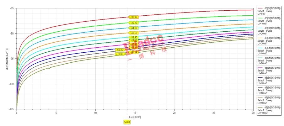 今天文章最重要的一张图来了哈,那就是不同距离下的电容对间的串扰值,如下所示: