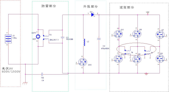 单块光伏电池PV发出的直流电,通过窜、并联,电压抬升到600V/1500V。安规等角度出发考虑,通常需要考虑光伏电池PV的漏电流监测。