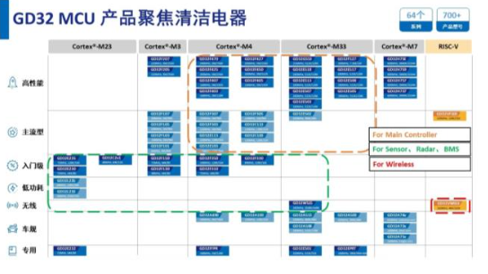 作为全球十大32位通用MCU厂商,兆易创新针对清洁电器行业需求构建了丰富的产品矩阵。按内核算力划分,其产品覆盖M4至M33内核,主频约150MHz。考虑到三角激光、dToF、线激光雷达等在清洁产品中应用广泛且成本要求苛刻,兆易创新在入门级低成本产品上实现突破,旗下GD32E235系列、GD32F31x系列、GD32W515系列均已在此领域落地成熟应用。此外,针对智能化产品对无线功能的核心需求,兆易创新也同步提供了相应产品。