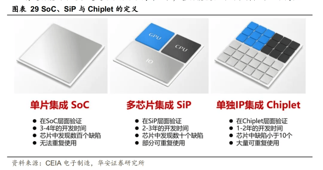 二是系统下沉,以系统级封装(SiP)为代表,将原本分散贴装在PCB板上的多种功能芯片集成为一颗芯片,压缩模块体积、缩短电气连接距离以提升芯片系统功能,代表了侧重异构集成的发展方向。
