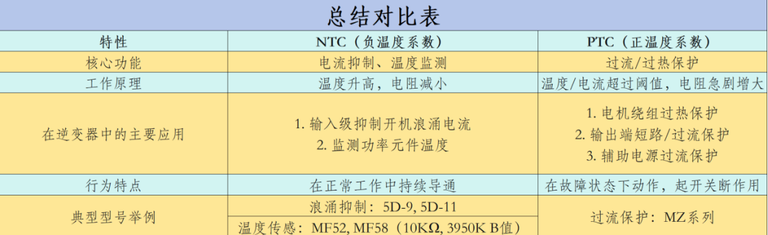 希望这次梳理能更准确地回答您的问题!对于PTC在逆变器中的具体选型(如额定电压、动作电流、居里温度等),您需要根据具体的保护需求来确定。