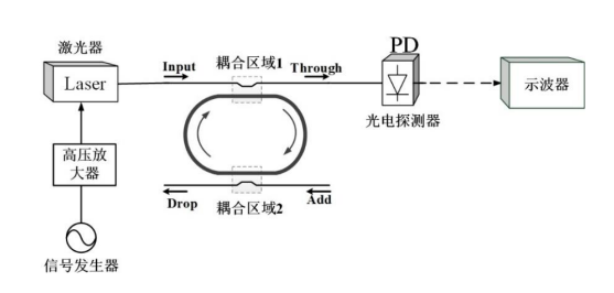 基础参数测试:在光波导环形谐振腔的基本参数(如Q值、半高全宽、自由谱宽FSR)测试中,会搭建包含激光器、信号发生器、功率放大器、光波导环形谐振腔、光电探测器和示波器等的测试系统。信号发生器产生的扫描信号经功率放大器(如ATA-2042高压放大器)放大后,驱动激光器实现波长调谐。满足谐振条件的波长会在谐振腔中谐振,通过探测器和示波器即可观测和分析谐振谱线。
