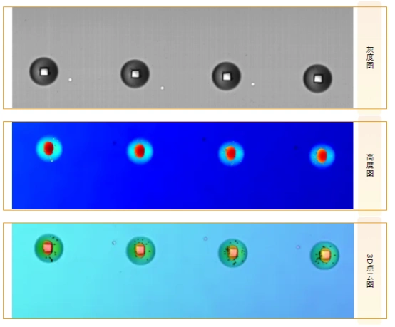 在芯片贴片检测案例中,传感器成功应对了高反光基座、黑色封装材料以及透明胶水等多种材质共存的应用场景。实验表明,即使是同时包含黑色吸光材质、高反光材质、透明材质的复杂工件,传感器也能实现精确测量,解决了传统检测方式在面对多材质混合物体时的难题。