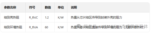 热阻决定器件功耗与温度上升的关系,是散热设计的核心依据,具体如下表: