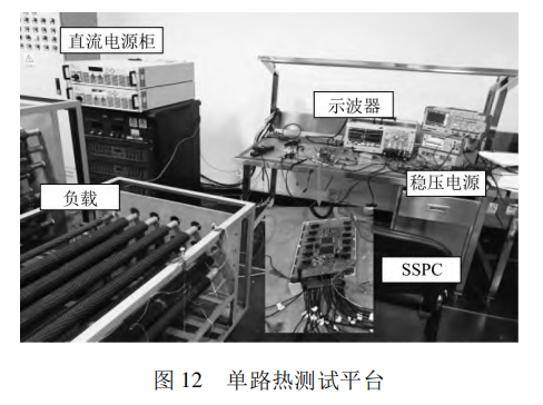 单路热测试平台如图?12?所示。采用阻性负载台,SSPC?样机,示波器,电源柜、线性电源等设备,搭建单路热测试平台。