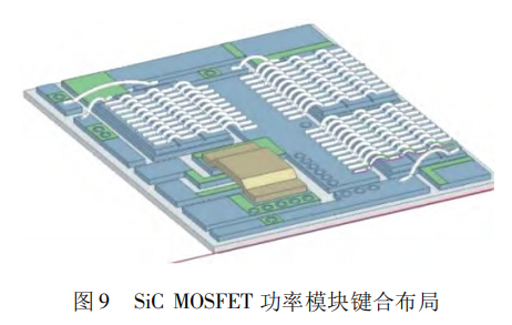 综上,SiC MOSFET?功率模块键合布局如图?9所示。图?9?中共有?3?个裸片?SiC MOSFET,右侧的两个为主回路工作芯片,左侧的是接通容性负载时,进行预充电的功率回路。只在接通初期进行工作,而稳态时并不参与导电。
