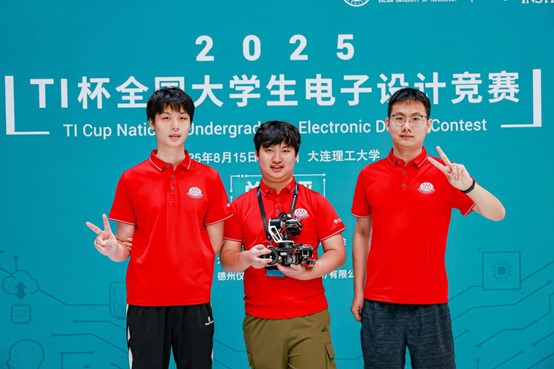 TI 杯 2025 年全国大学生电子设计竞赛总测评于 8 月 20 日在大连理工大学创新创业学院圆满落幕。本届赛事共吸引来自全国上千所高校的两万多支队伍、超过六万名学生报名参赛。经过多轮测评与复评,最终共产生 404 支全国一等奖队伍、1150 支全国二等奖队伍。其中,由郭兰鑫、武文琦和王昊三位本科生组成的江南大学参赛队,凭借“简易自行瞄准装置”脱颖而出,以满分成绩摘得本科组最高荣誉 —— TI 杯。