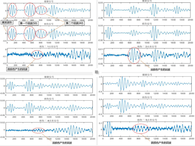验证了基于椭圆轨迹法的损伤定位方法,获取回波信号并读取因损伤产生回波波峰所到达时间,从而定位出损伤所在位置。