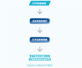 一般来说,我们的程序会自动打开,用户可以跳过这些步骤。但是,如果没有,点击设备管理器中的USB图标应该会使应用程序运行。