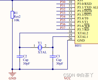 这是单片机最小系统的晶振电路,接单片机的XTAL1 XTAL2引脚,给单片机产生时钟。