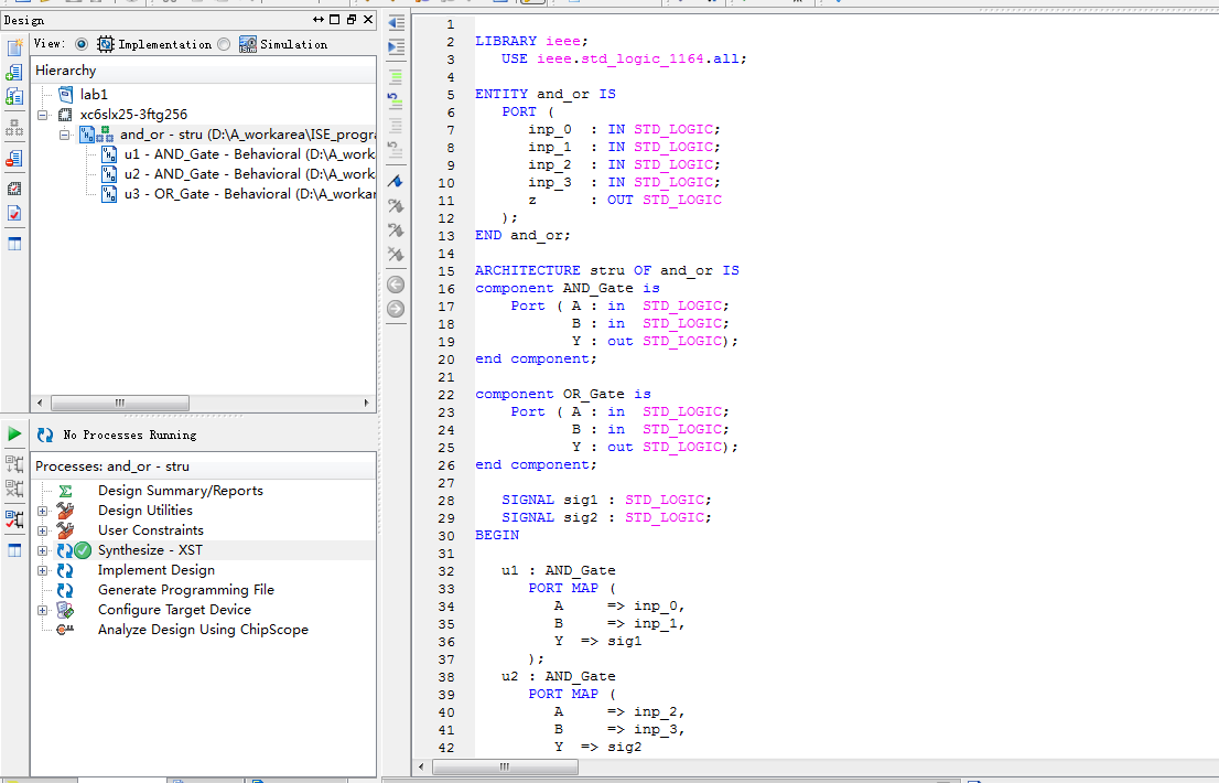 名称:使用行为、结构、数据流三种方式描述电路设计VHDL代码ISE仿真