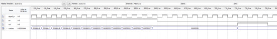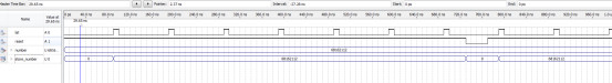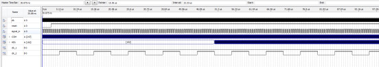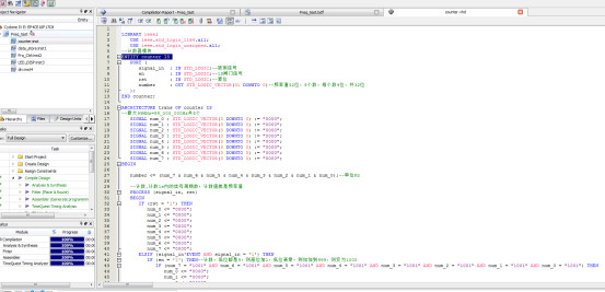LIBRARY?ieee; ???USE?ieee.std_logic_1164.all; ???USE?ieee.std_logic_unsigned.all; --计数器模块 ENTITY?counter?IS ???PORT?( ??????signal_in??:?IN?STD_LOGIC;--被测信号 ??????en?????????:?IN?STD_LOGIC;--1S闸门信号 ??????rst????????:?IN?STD_LOGIC;--复位 --gear???????:?OUT?STD_LOGIC;--档位,高电平表示1Hz档位,低电平表示0.0001HZ ??????number?????:?OUT?STD_LOGIC_VECTOR(31?DOWNTO?0)--频率值32位,8个数,每个数4位,共32位 ???); END?counter; ARCHITECTURE?trans?OF?counter?IS --最大99MHz=99_000_000Hz共8个 ???SIGNAL?num_0?:?STD_LOGIC_VECTOR(3?DOWNTO?0)?:=?"0000"; ???SIGNAL?num_1?:?STD_LOGIC_VECTOR(3?DOWNTO?0)?:=?"0000"; ???SIGNAL?num_2?:?STD_LOGIC_VECTOR(3?DOWNTO?0)?:=?"0000"; ???SIGNAL?num_3?:?STD_LOGIC_VECTOR(3?DOWNTO?0)?:=?"0000"; ???SIGNAL?num_4?:?STD_LOGIC_VECTOR(3?DOWNTO?0)?:=?"0000"; ???SIGNAL?num_5?:?STD_LOGIC_VECTOR(3?DOWNTO?0)?:=?"0000"; ???SIGNAL?num_6?:?STD_LOGIC_VECTOR(3?DOWNTO?0)?:=?"0000"; ???SIGNAL?num_7?:?STD_LOGIC_VECTOR(3?DOWNTO?0)?:=?"0000"; BEGIN ??? ???number?<=?(num_7?&?num_6?&?num_5?&?num_4?&?num_3?&?num_2?&?num_1?&?num_0);--单位Hz --???PROCESS?(num_0,num_1,num_2,num_3,num_4,num_5,num_6,num_7,rst) --???BEGIN --????????IF(num_7="0000"?and?num_6="0000"?and?num_5="0000"?and?num_4="0000")THEN --gear<='0'; --ELSIF(num_7>"0000")THEN --gear<='1'; --END?IF; --???END?PROCESS;