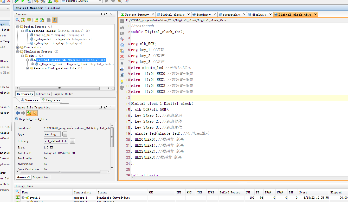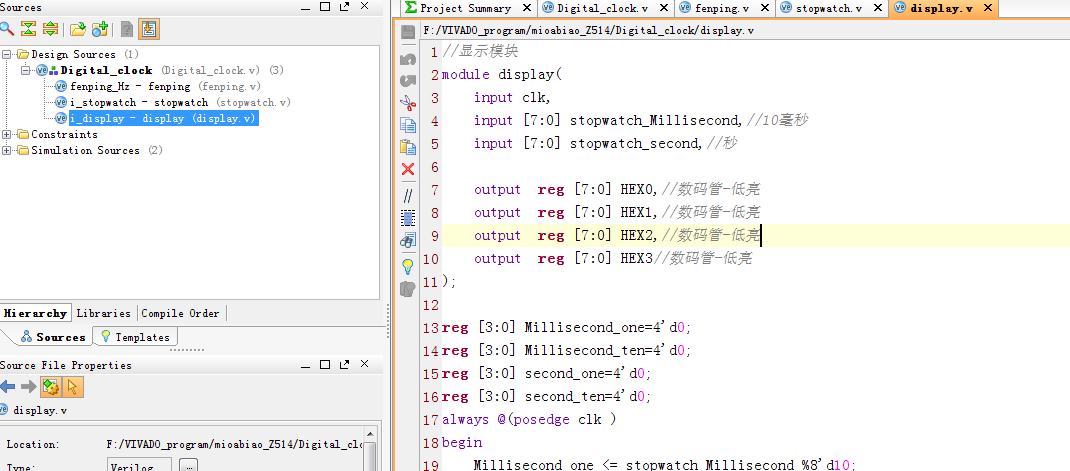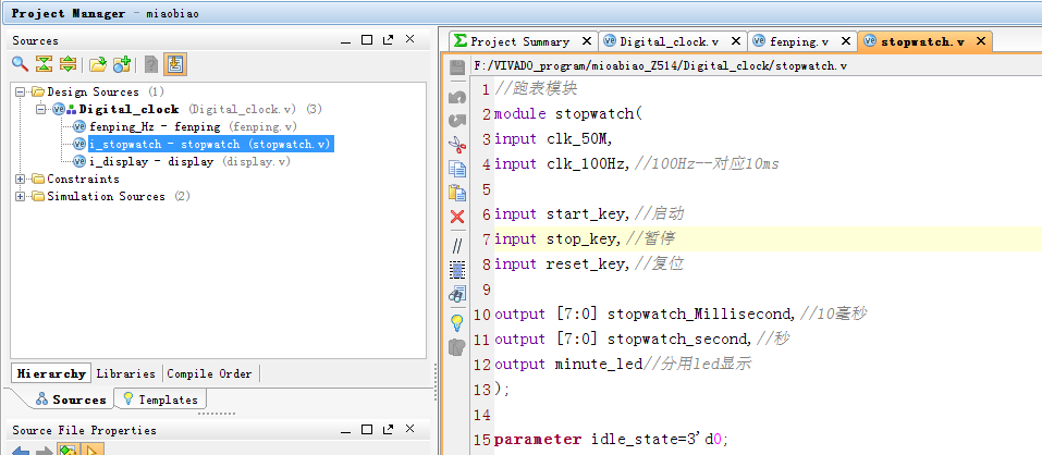 名称:短跑计时器设计与实现Verilog代码VIVADO仿真