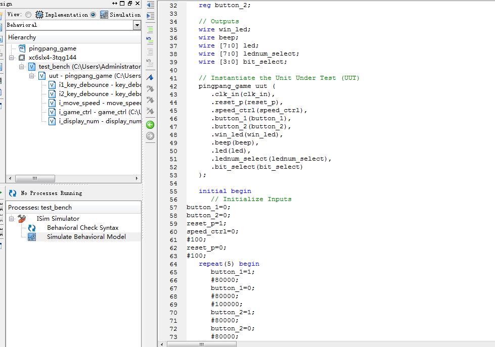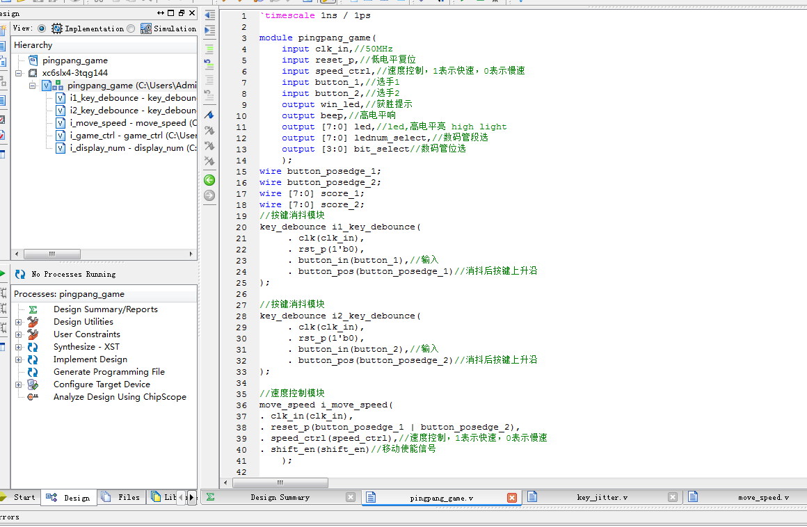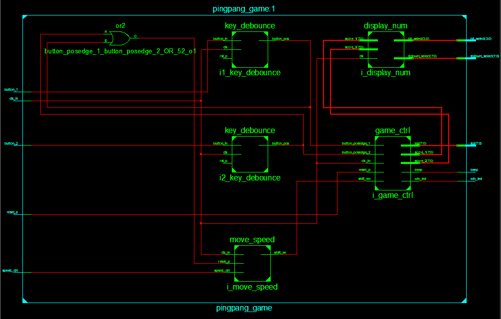 名称:基于FPGA的乒乓球比赛游戏机设计Verilog代码ISE仿真