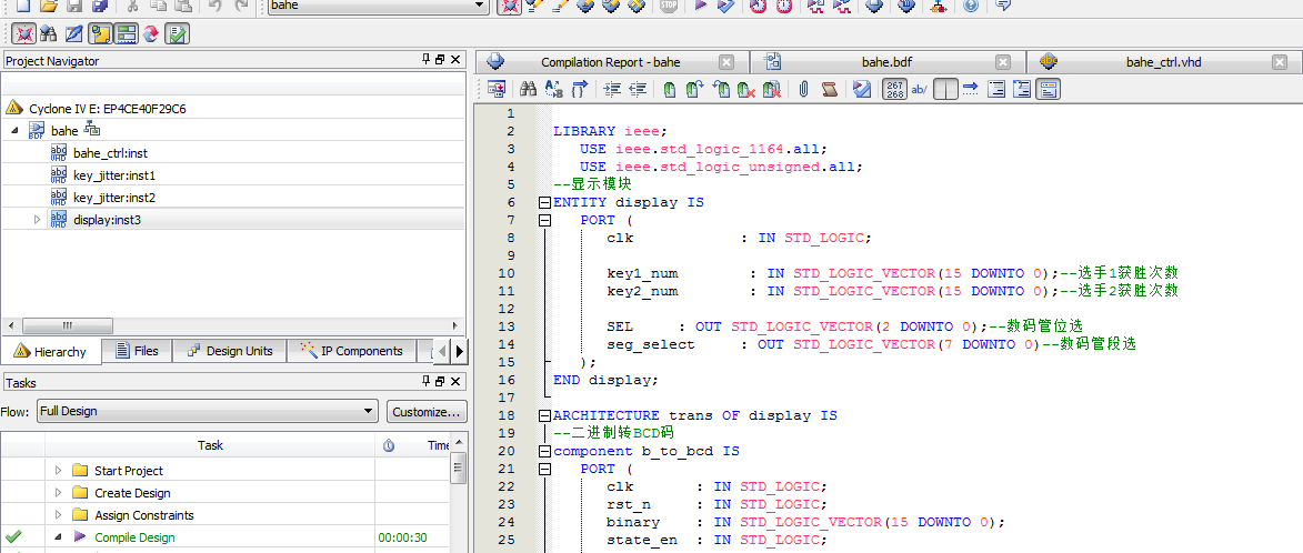 基于FPGA的拔河游戏的电路设计VHDL代码Quartus 实验箱