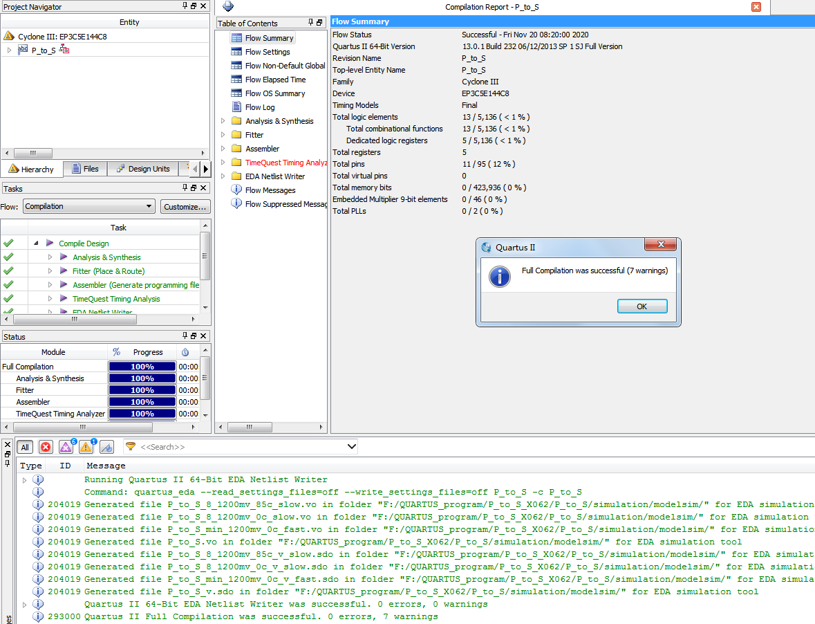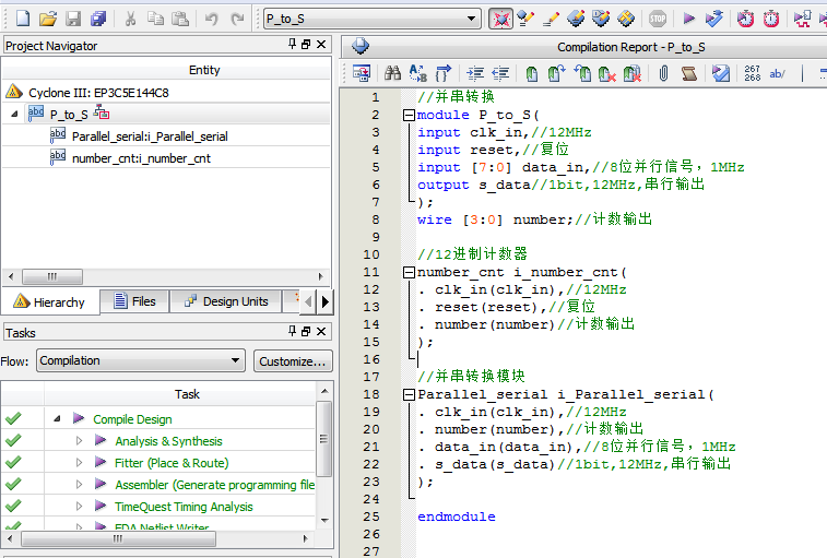 名称:并串数据转换编码器设计Verilog代码Quartus仿真