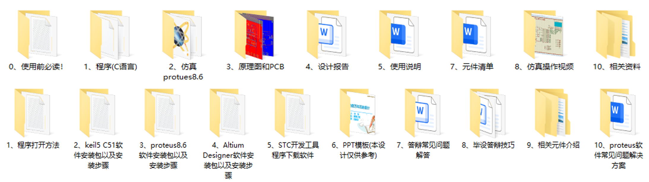设计资料主要包括C程序+Proteus仿真+PDF原理图+PCB图+设计报告+使用说明+元件清单+仿真演示视频,如需实物请联系。