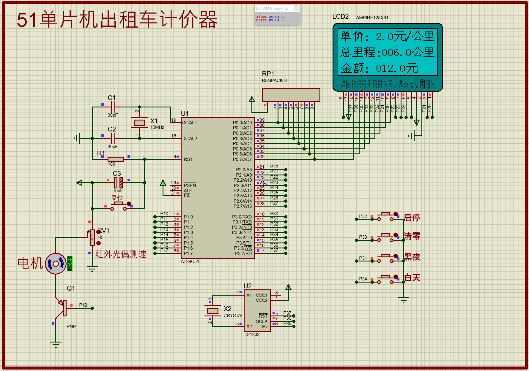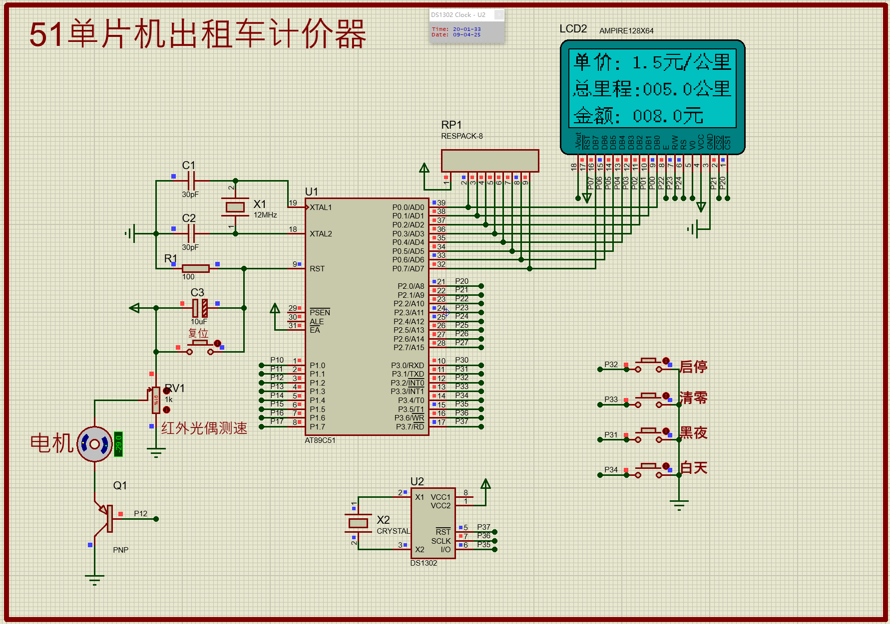 c.通过LCD12864液晶显示里程、单价、总价等相关信息。