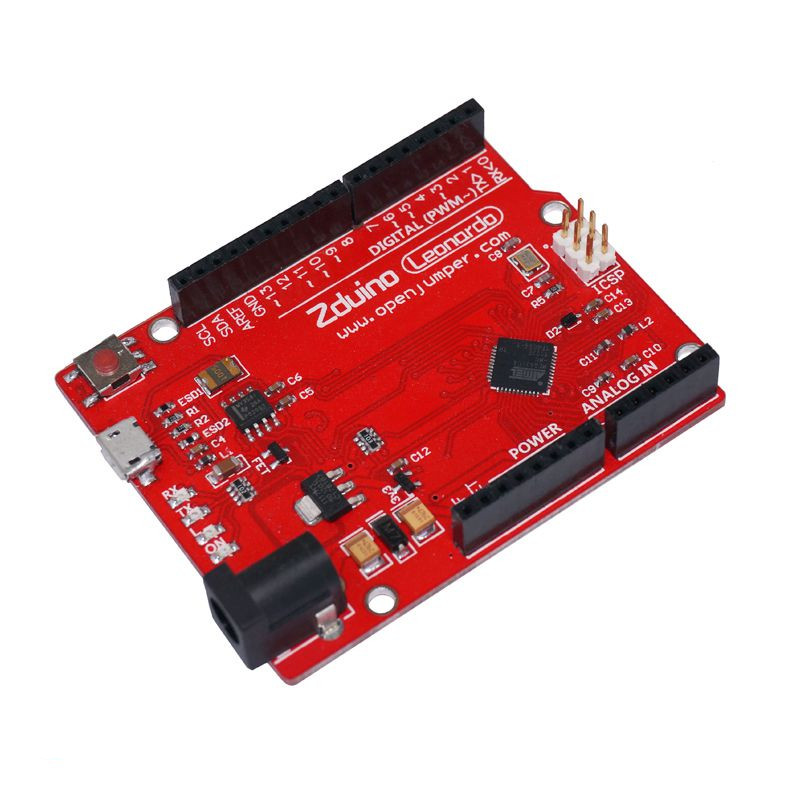 Zduino Leonardo是基于ATmega32u4一个微控制器板,它有20个数字输入/输出引脚(其中7个可用于PWM输出、12个可用于模拟输入),一个16 MHz的晶体振荡器,一个Micro USB接口,一个DC接口,一个ICSP接口,一个复位按钮.它包含了支持微控制器所需的一切,你可以简单地通过把它连接到计算机的USB接口,或者使用AC-DC适配器,再或者用电池来驱动它。
